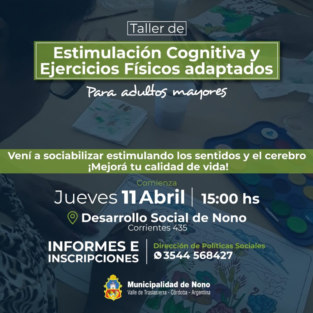 El taller: “Estimulación Cognitiva y Ejercicios Físicos Adaptados para Adultos” tiene como objetivo estimular las capacidades de cognitivas para: -asimilar -procesar -planificar -resolver -recordar -entender, entre otras…